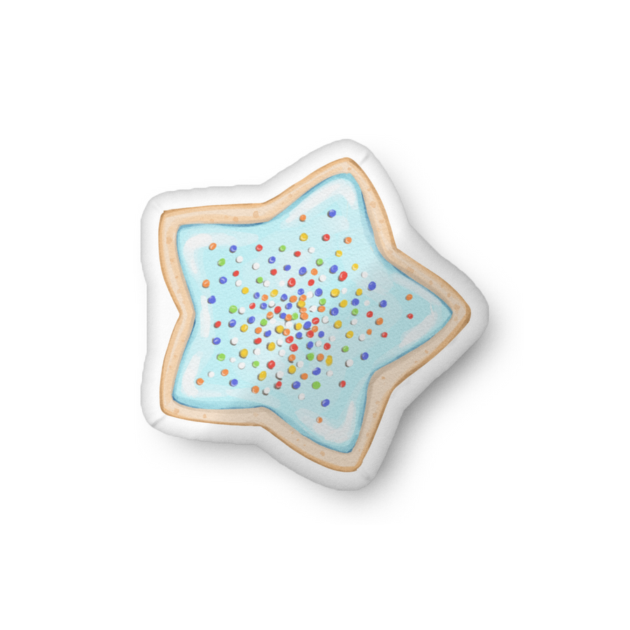 Snuggle up with a cute sugar cookie pillow! Soft, zipper-free, and with a colorful blue star with sprinkles design, it’s the perfect home accessory and gift.