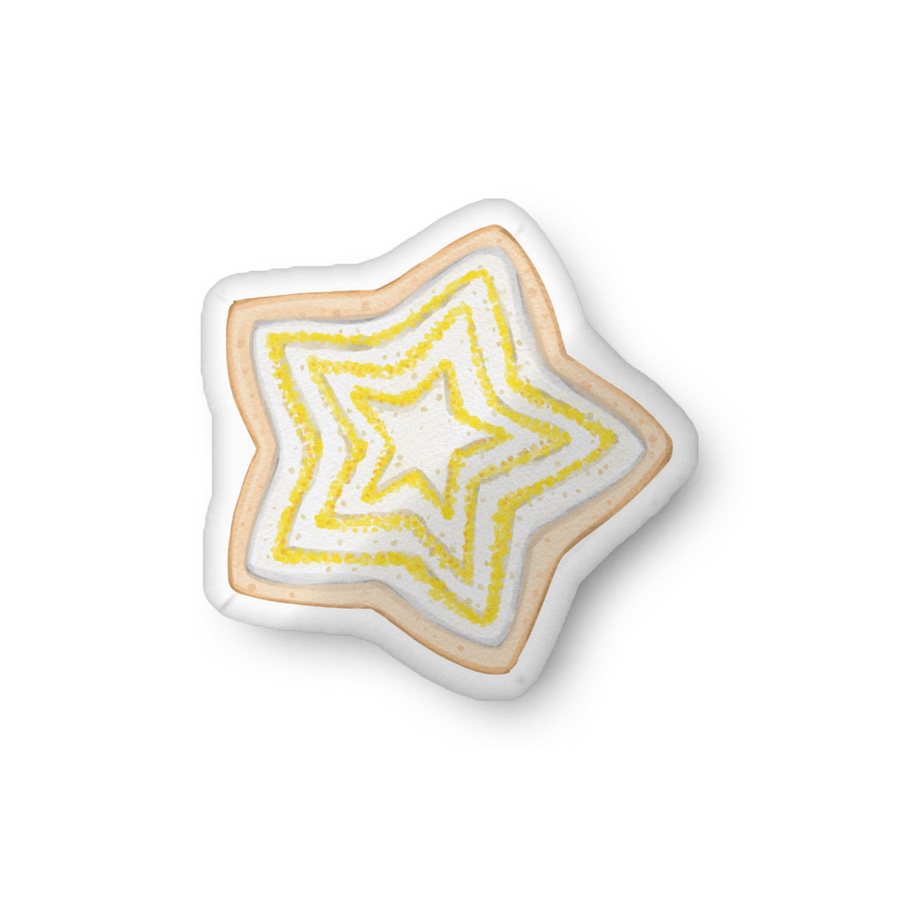 Snuggle up with a cute sugar cookie pillow! Soft, zipper-free, and with a colorful yellow striped star design, it’s the perfect home accessory and gift.