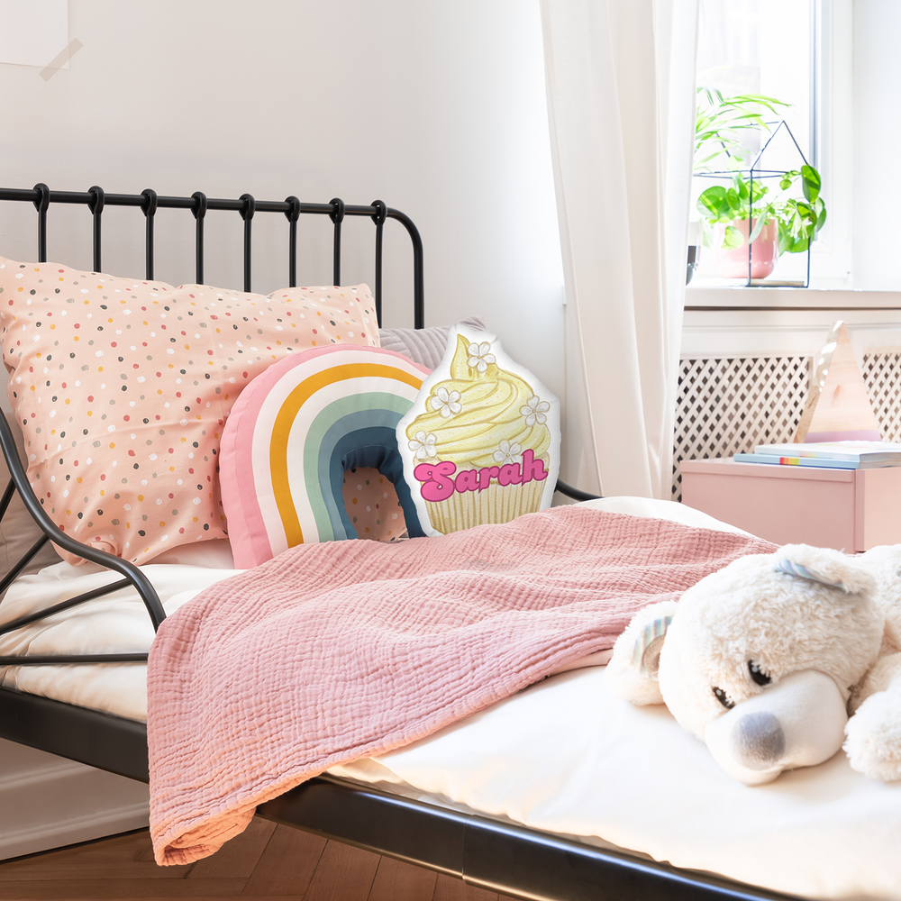 Snuggle up with a personalized cupcake pillow! Soft, zipper-free, and with a colorful cupcake design, it’s the perfect home accessory and gift.